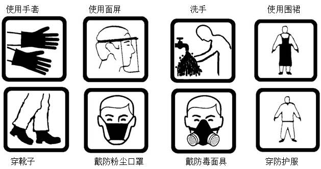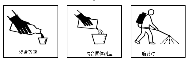 每種產(chǎn)品標簽都會說明在測量/混配和施藥時需要的防護裝備,這些信息會以象形圖來展示為了幫助所有產(chǎn)品使用者可以完全理解,在以下圖示操作時的防護要求。