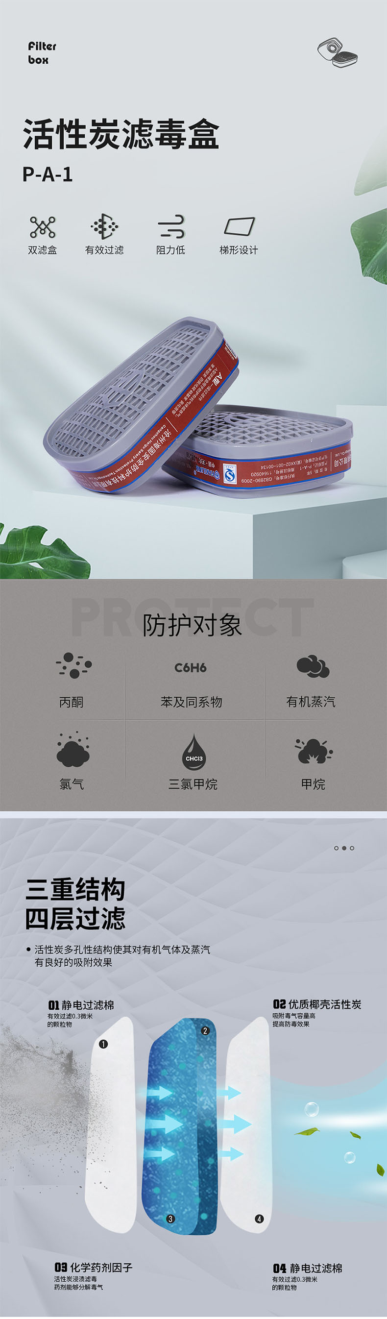 功能 | 3號(A型)濾毒盒,過濾有機(jī)氣體與蒸氣:苯、丙酮、醇類、四氯化碳、三氯甲烷等 |