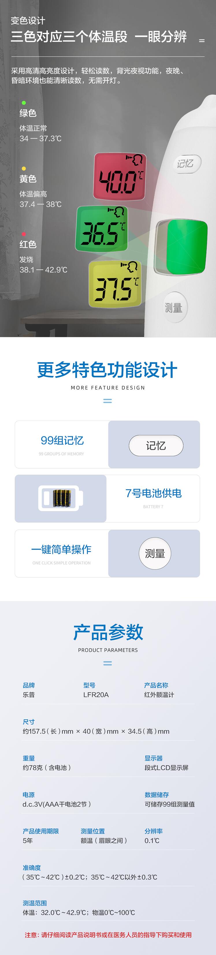 樂普小米粒紅外線電子體溫計家用成人新生兒嬰兒高精度醫(yī)用額溫槍。