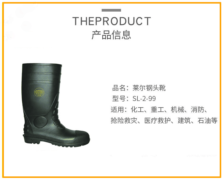 萊爾安全靴符合國標(biāo),LA,CE,CSA認(rèn)證;防水,防滑,耐磨,耐化學(xué)品腐蝕,可選擇保護(hù)足趾,防刺穿,防靜電功能。